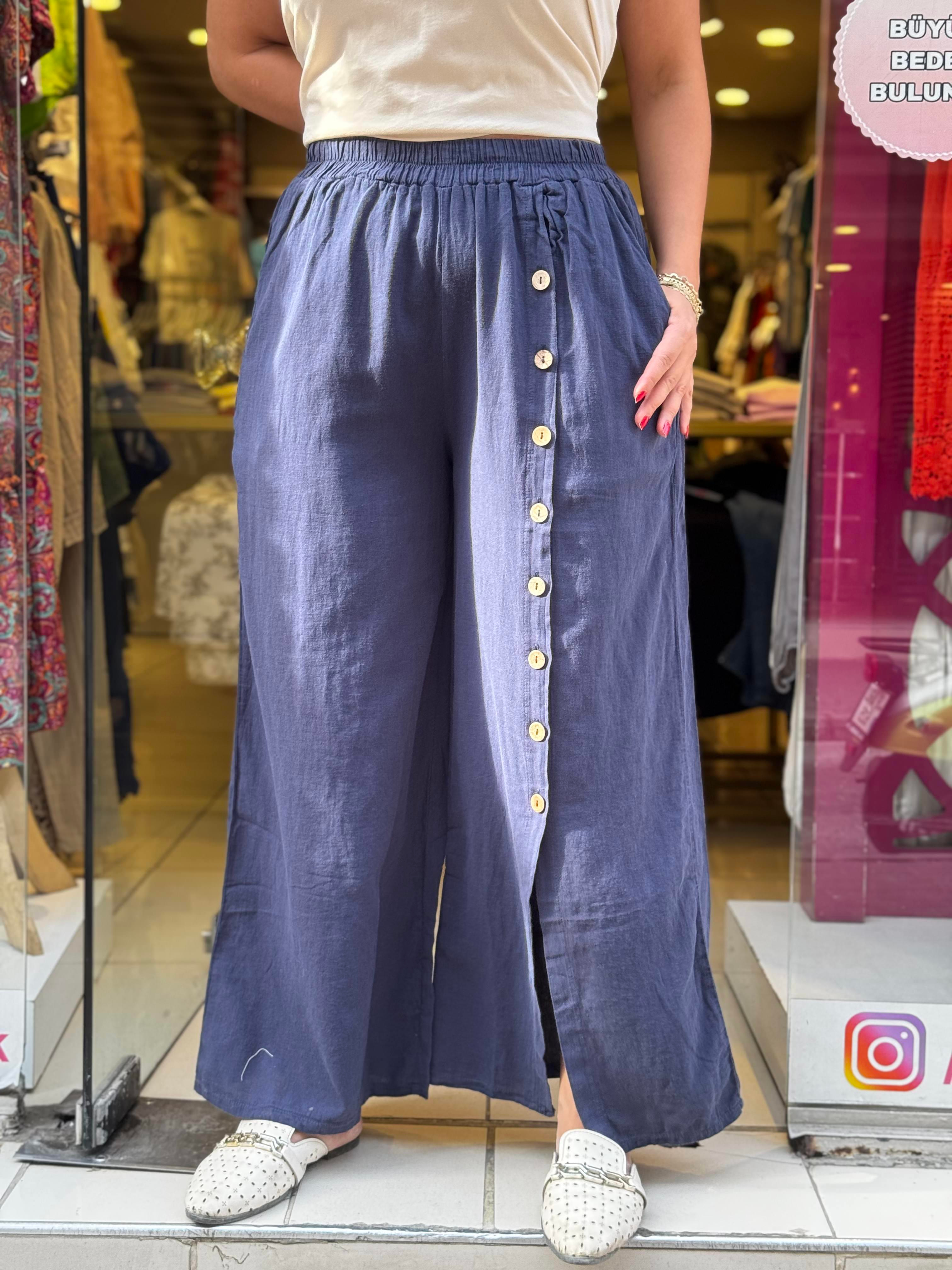 %44 Pamuk %28 Keten %28 Viskon kumaş olduğu için yakma, terletme yapmaz. 36-44 beden arası uyumludur. Beli lastiklidir. Ürün ölçüleri: Bel: 62 cm (Açtırınca 106 cm'e kadar genişliyor.) Basen: 120 cm Boy: 96 cm