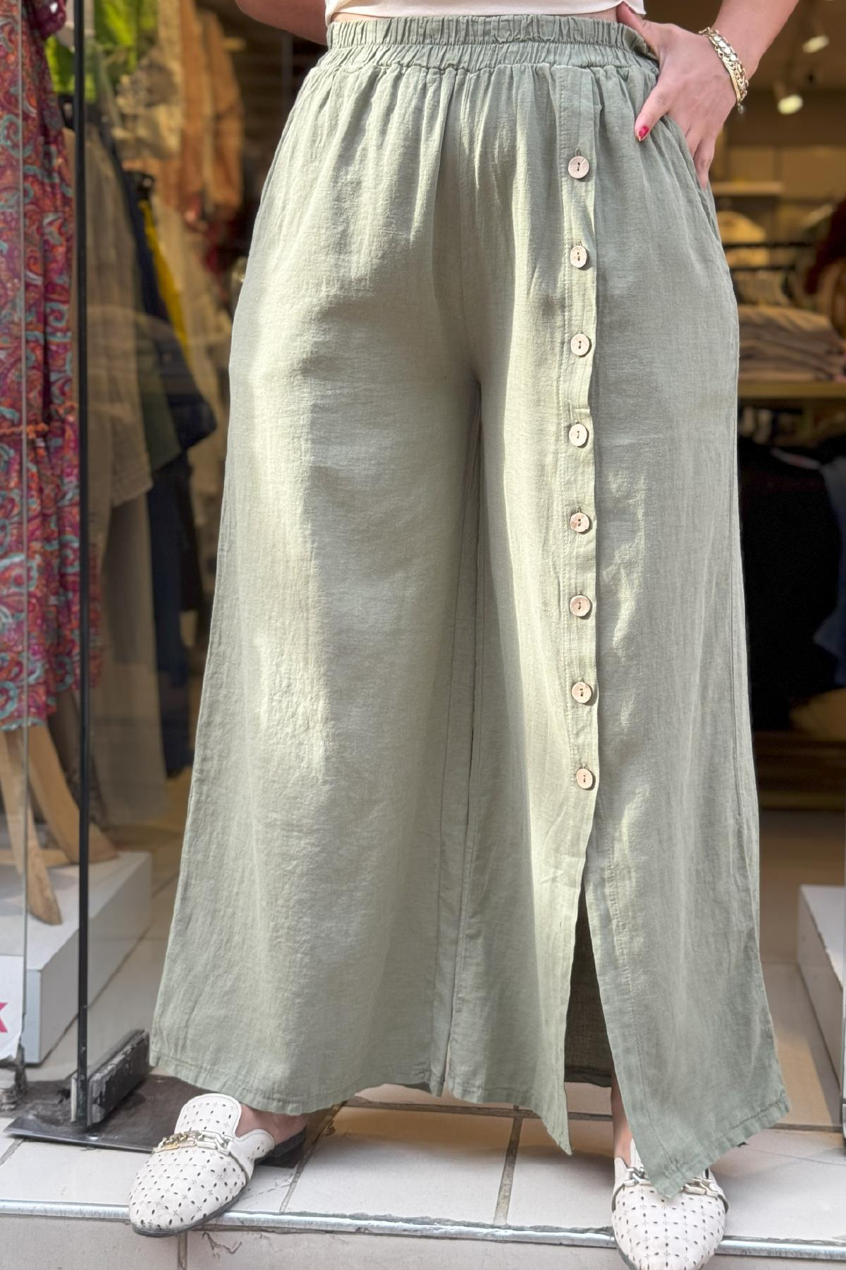 Düğme Detaylı Pantolon Zeytin Yeşili (202)