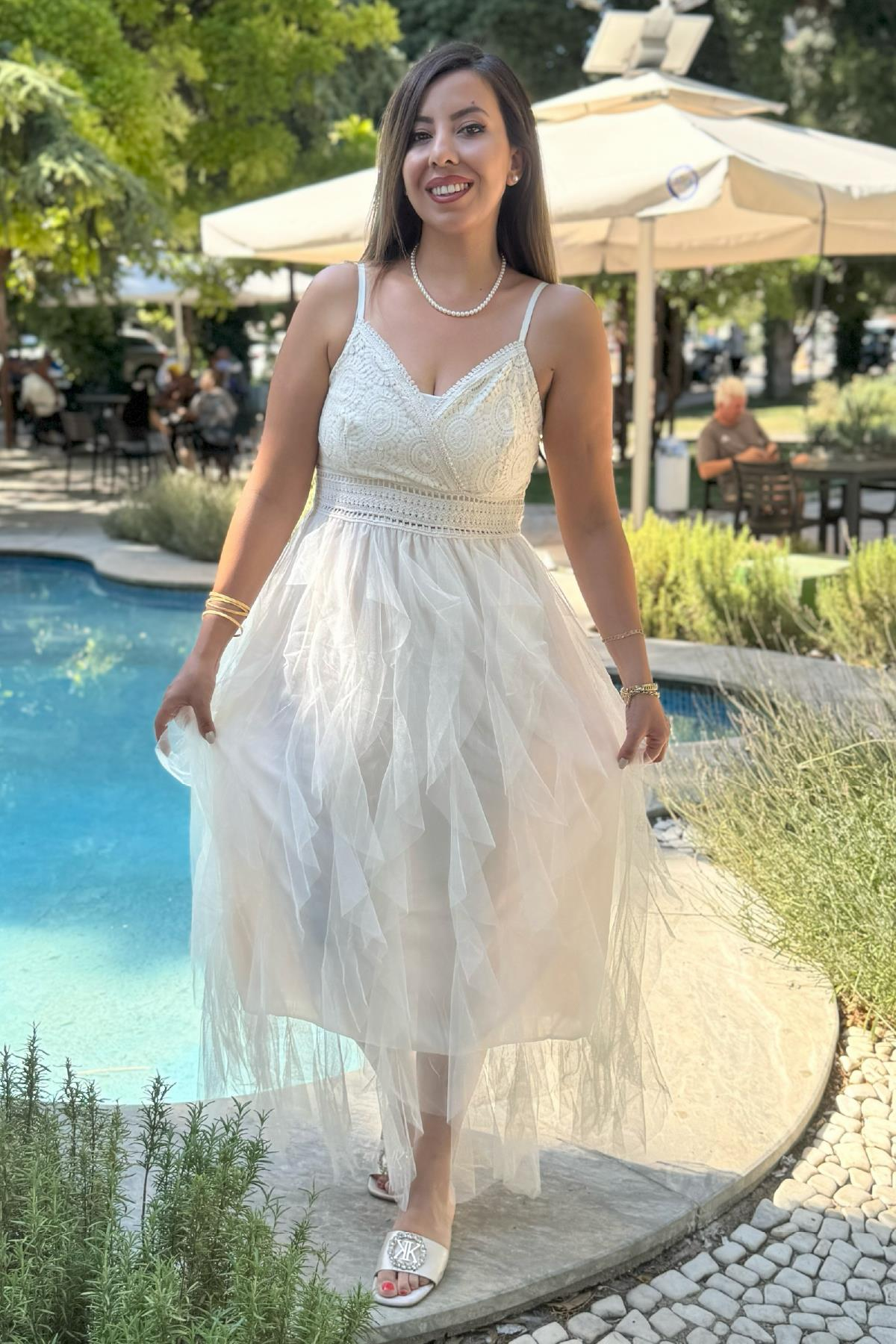 Tütü Etekli İthal Elbise Krem Tütü Etekli İthal Elbise Beyaz