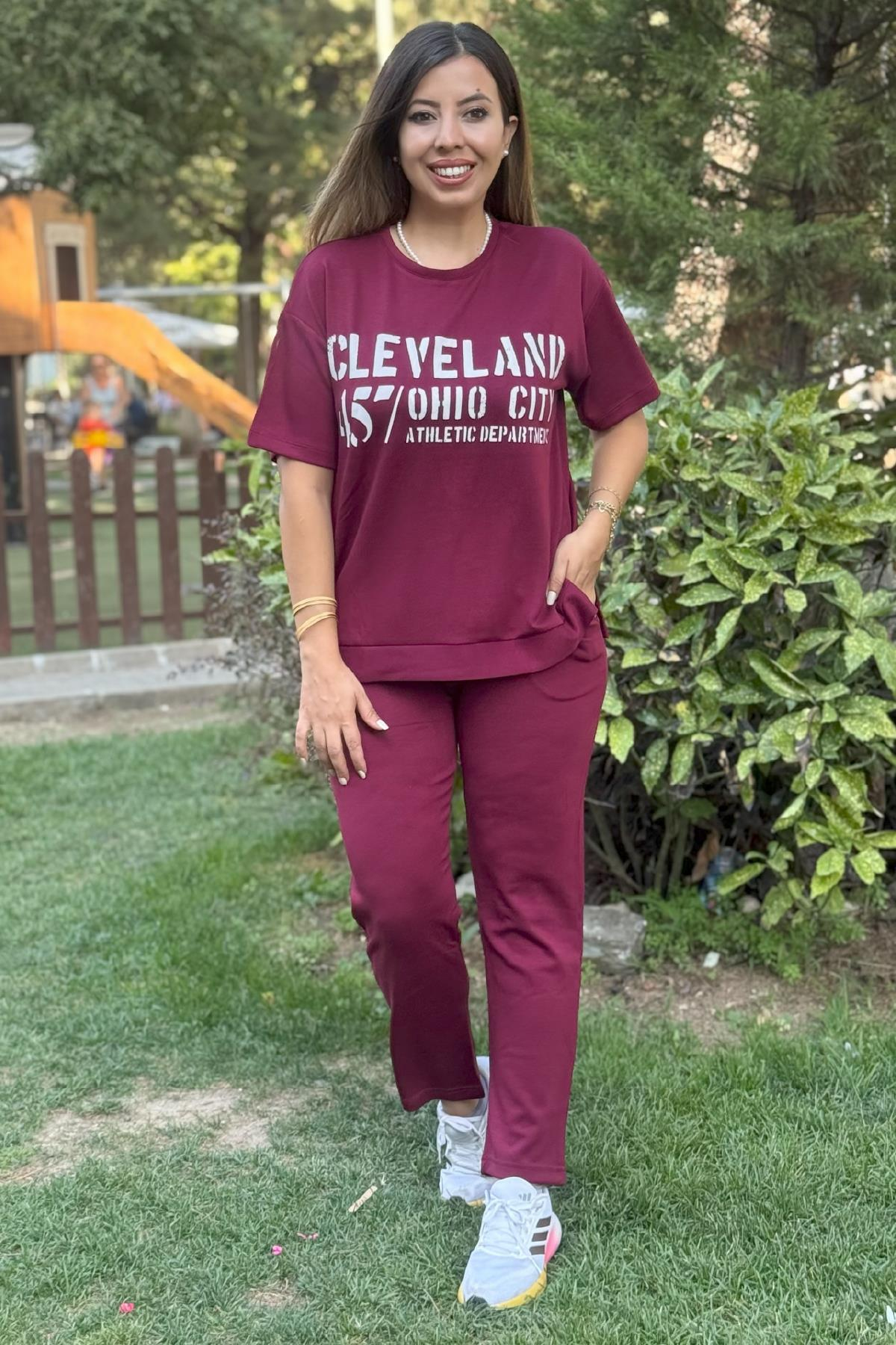 Yazı Baskılı Eşofman Takımı Bordo (2228)