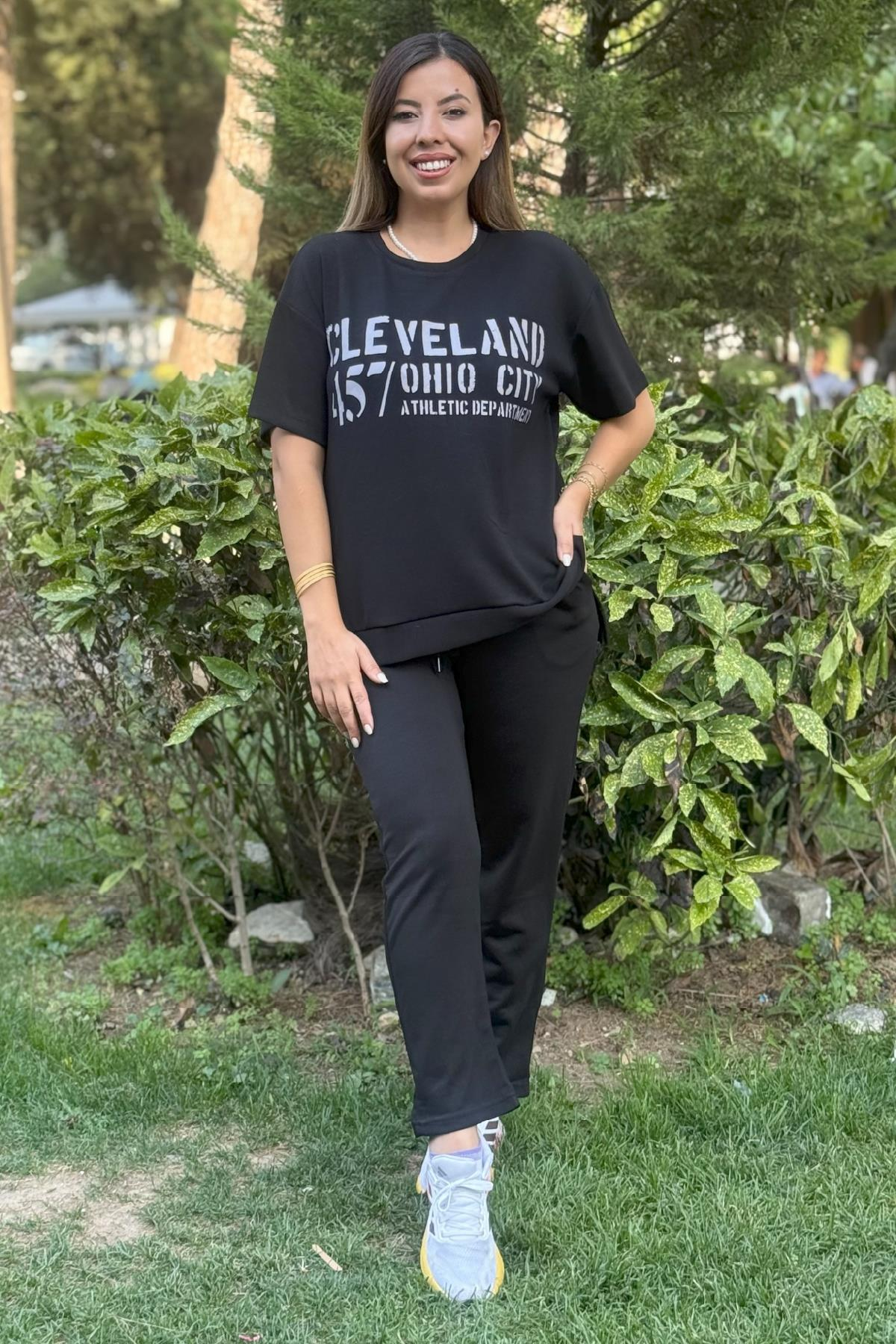 Yazı Baskılı Eşofman Takımı Siyah (2228)
